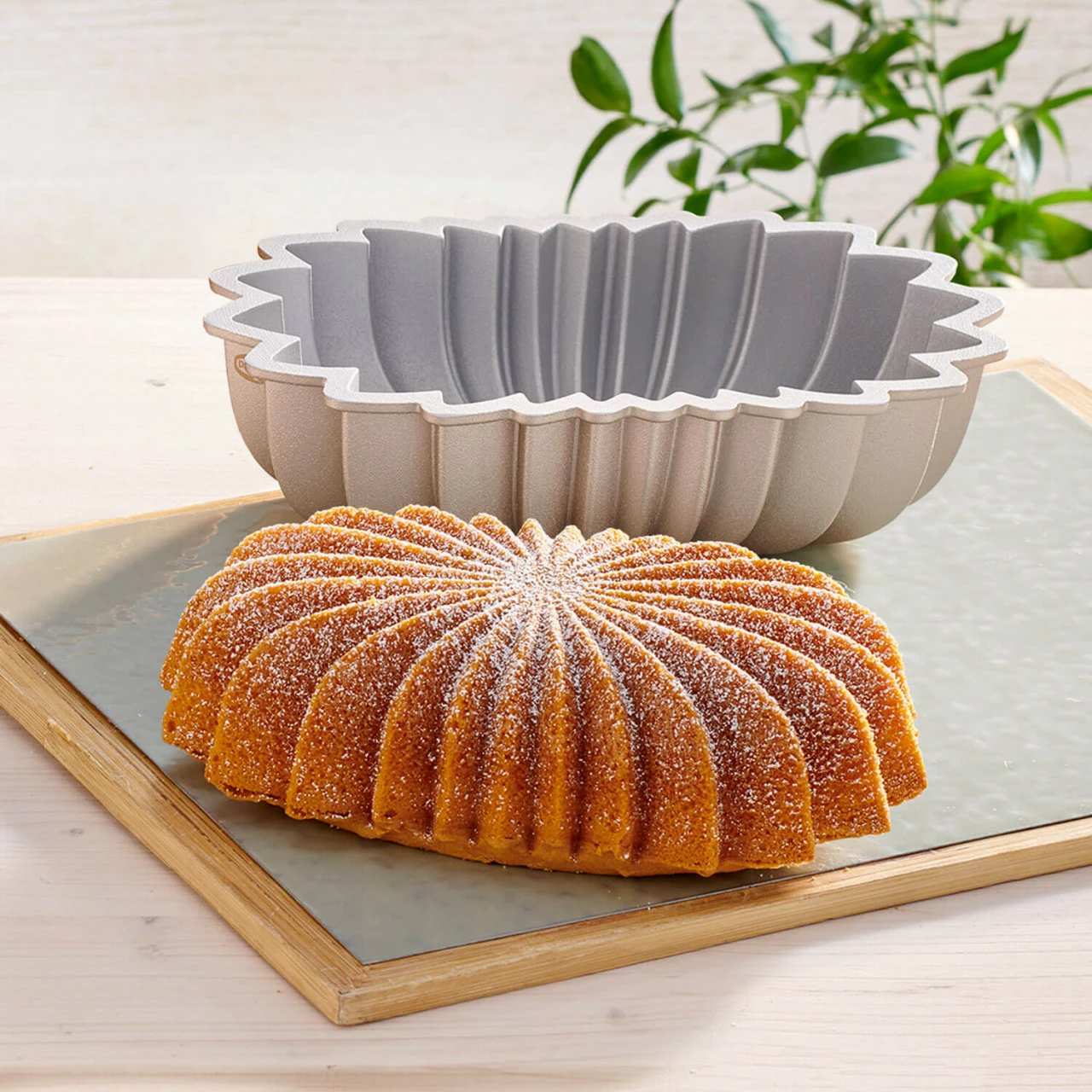 Sensation – der Name ist hier Programm. In der champagnerfarbenen Backform entsteht durch die besondere Formgebung ein einzigartiger Kuchen. Die Größe ist ausreichend für eine Dr. Oetker Backmischung für Kastenkuchen, die Sie nach dem Backen nach Herzenslust und dem Anlass entsprechend verzieren und dekorieren können.