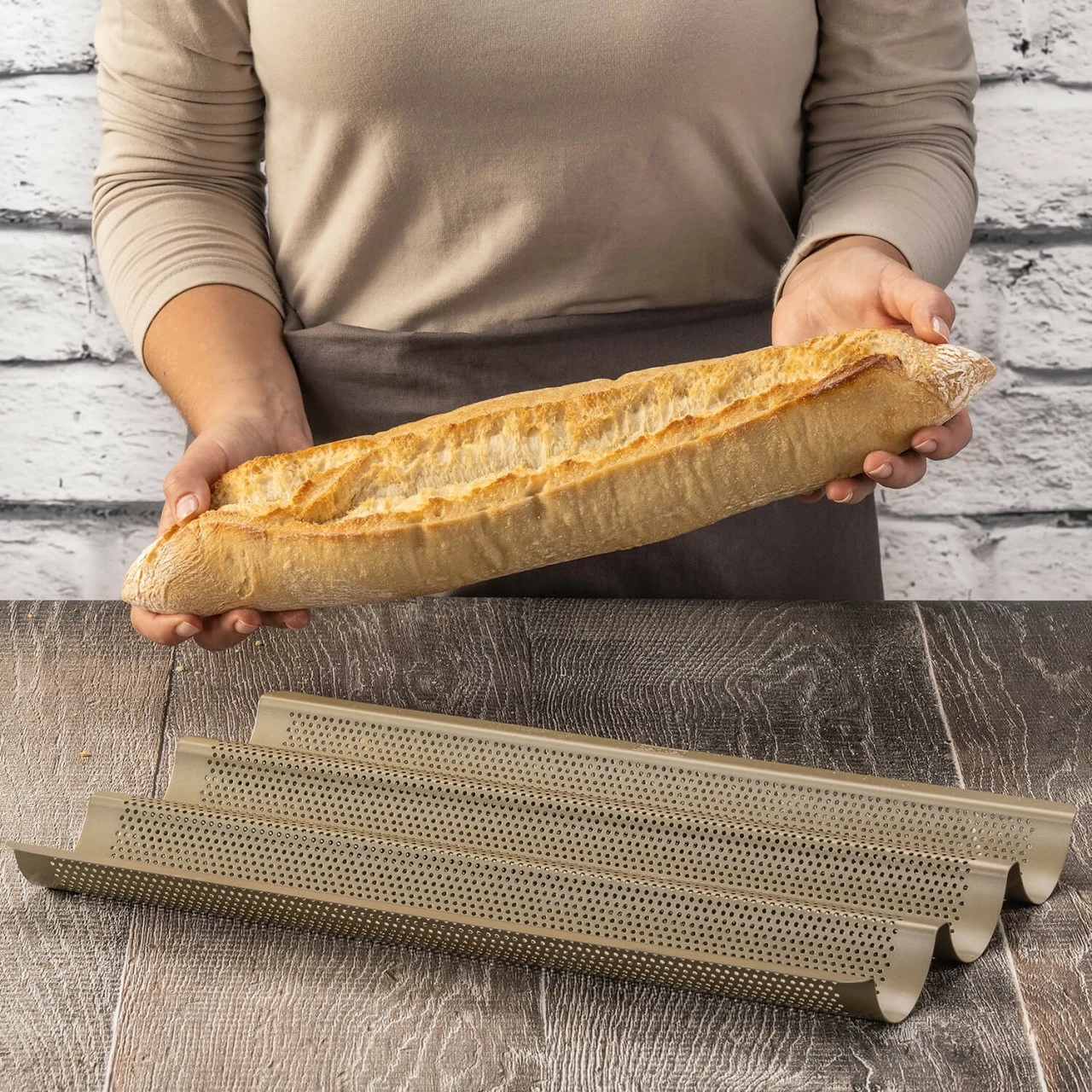 • 3er Baguetteblech zum Backen von selbstgemachten Baguettes