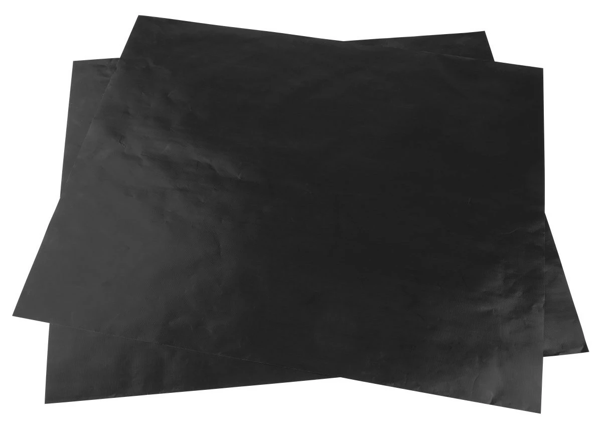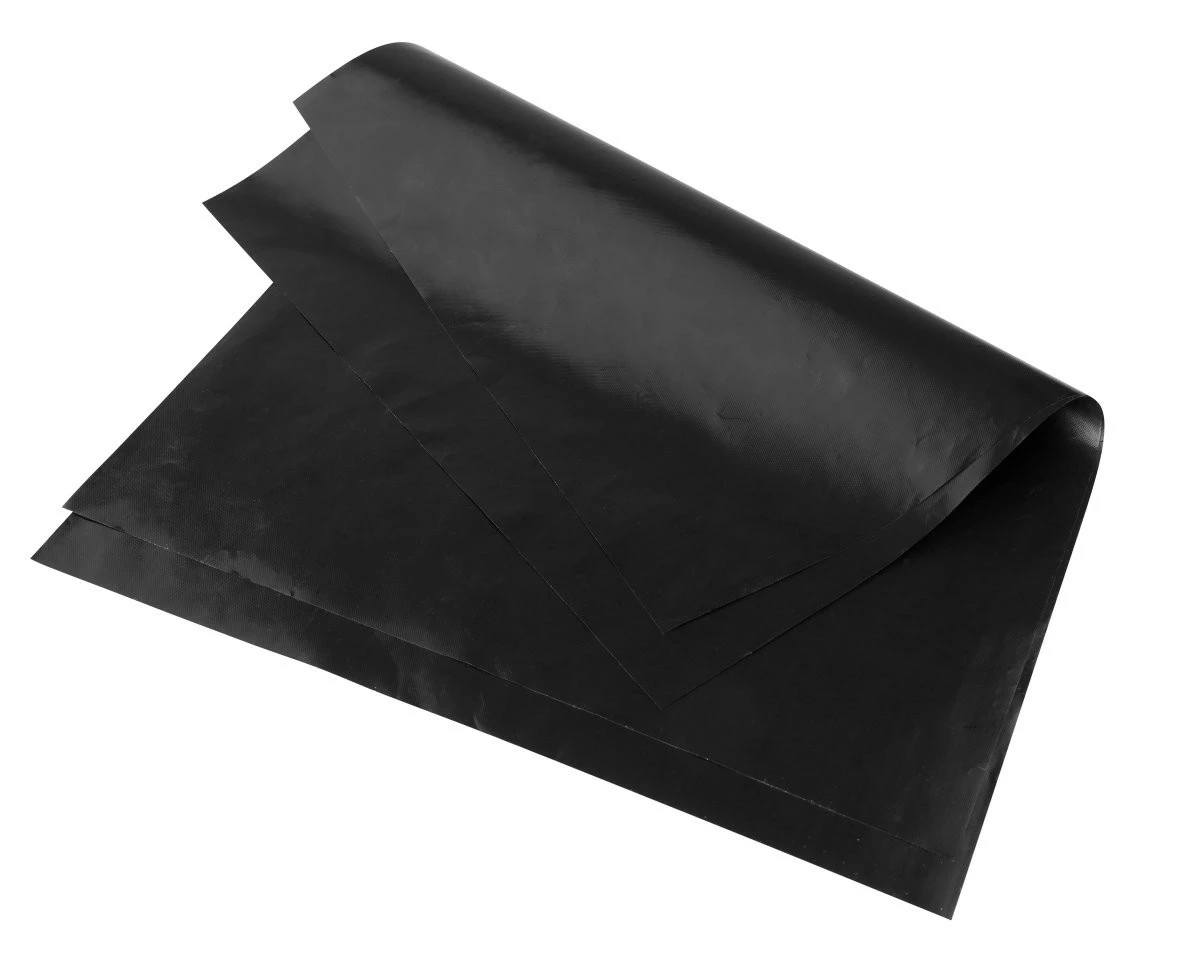 Backpapier. Die schwarze Folie kann beidseitig verwendet werden und verfügt außerdem über