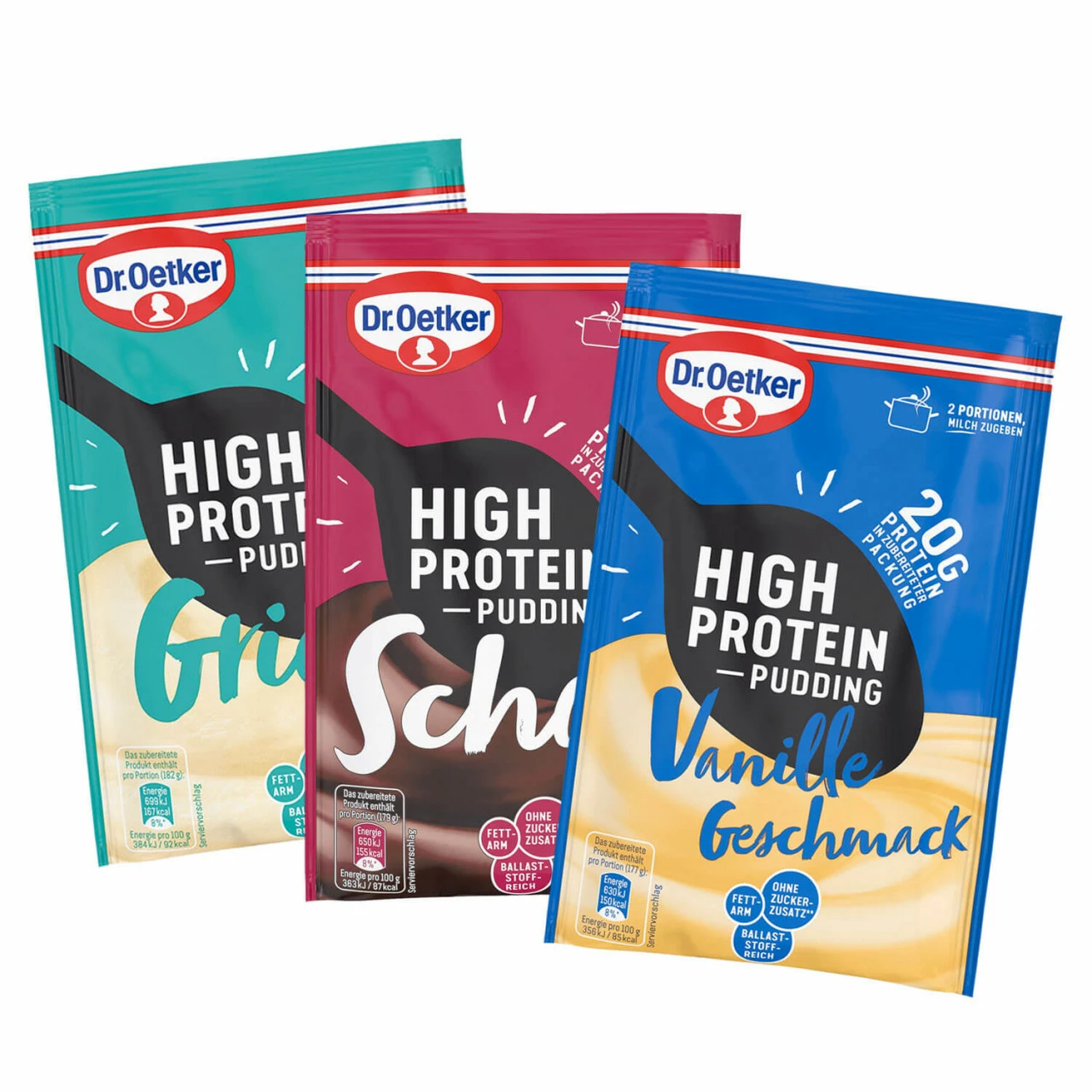 Produktbeschreibung: Die High Protein Pudding-Pulver zaubern im Handumdrehen proteinreiche Cremepuddinge, die nicht nur fettarm, ohne Zuckerzusatz und ballaststoffreich, sondern auch richtig lecker sind. Probieren Sie jetzt alle drei Sorten unseres neuen High Protein Puddingpulvers im Set mit 15% Preisvorteil ggü. Einzelkauf (UVP).