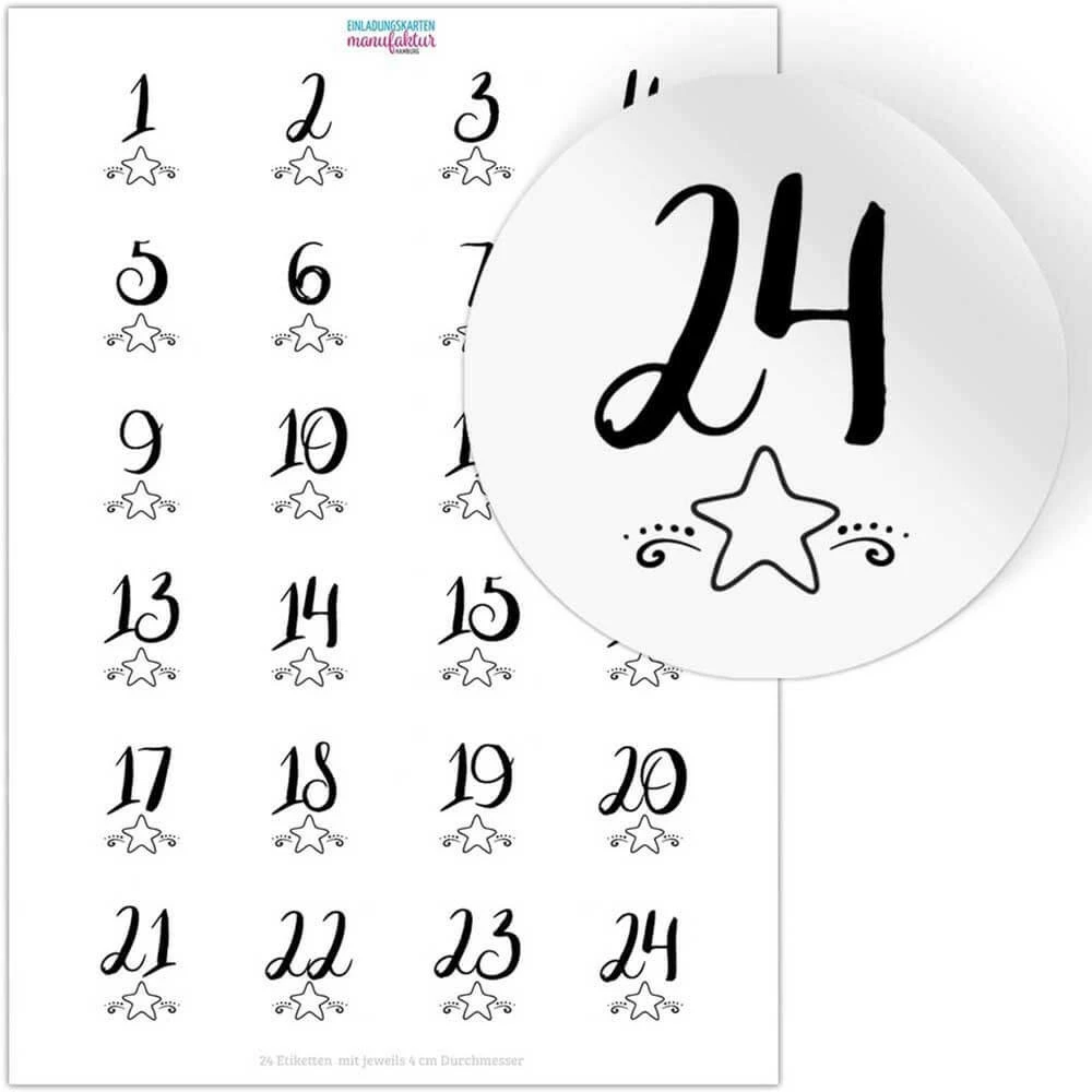 Die Tüte aufstellen, mit einem beliebigen Inhalt füllen, Tüte ein oder zweimal umknicken, mit Klebeband zukleben und den richtigen Zahlen-Aufkleber auf die Tüte kleben, das ganze 24-mal wiederholen. Danach selber entscheiden, ob die Tüten in eine Kiste kommen, aufgehängt oder schön auf einer Fensterbank drapiert werden. Fertig.