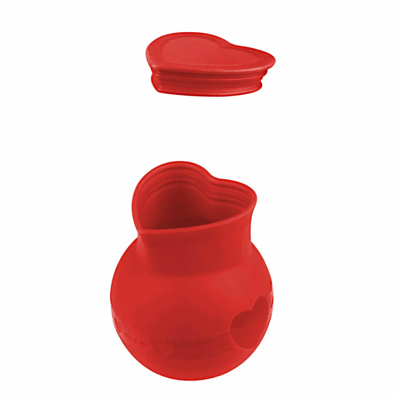 Ganz schön praktisch: Der knallrote Schmelztopf mit Deckel aus der Dr. Oetker-Serie „Flexxibel Love“ eignet sich perfekt für das Schmelzen von Kuvertüre und Schokolade – oder auch zum Erwärmen von Butter, Saucen und Co. Dafür den Schmelztopf einfach in ein Wasserbad oder in die Mikrowelle stellen. Der Schmelztopf lässt sich kneten, so dass der Inhalt auch garantiert gleichmäßig flüssig wird.