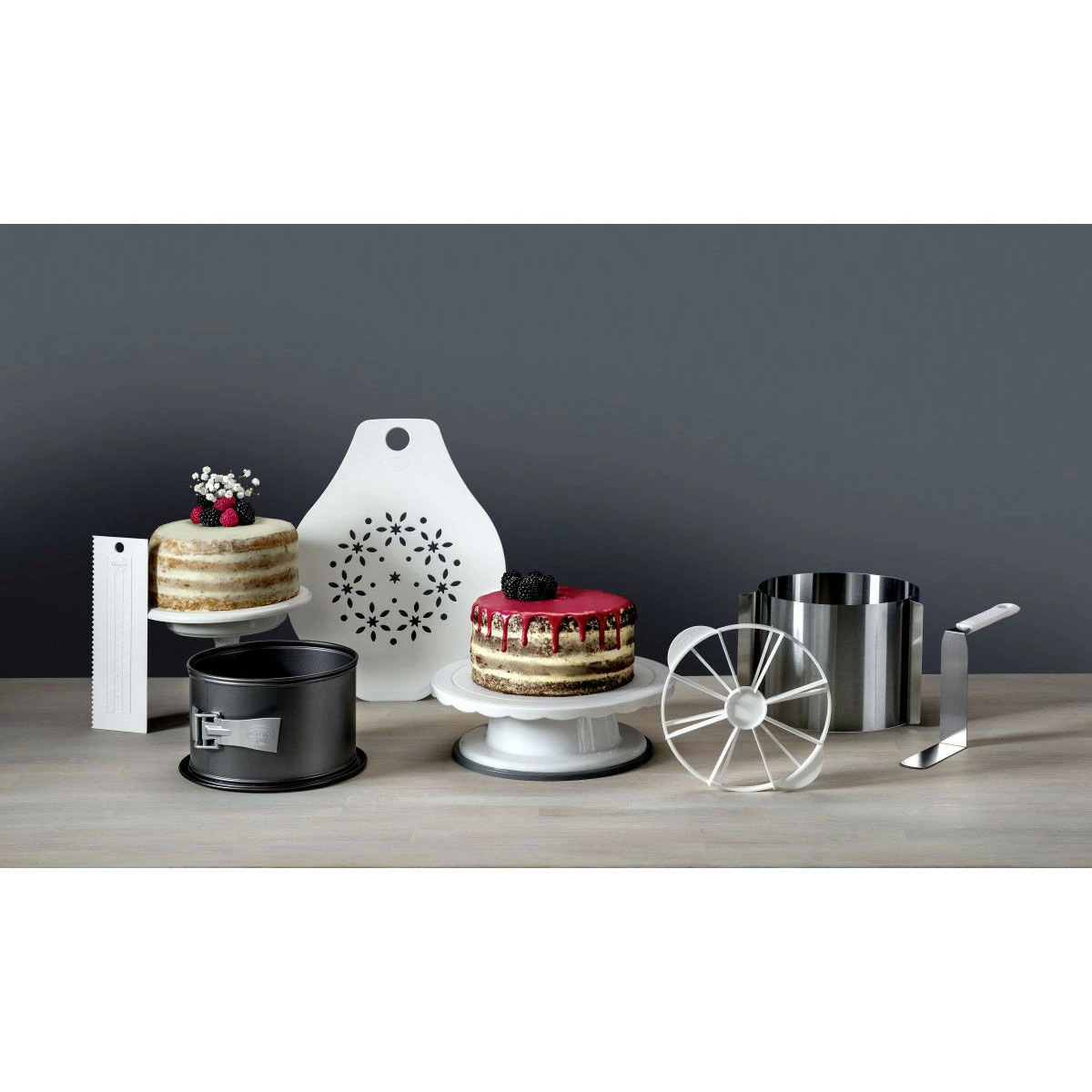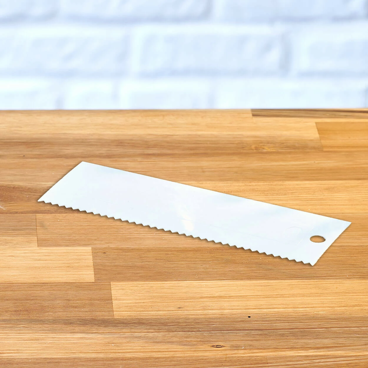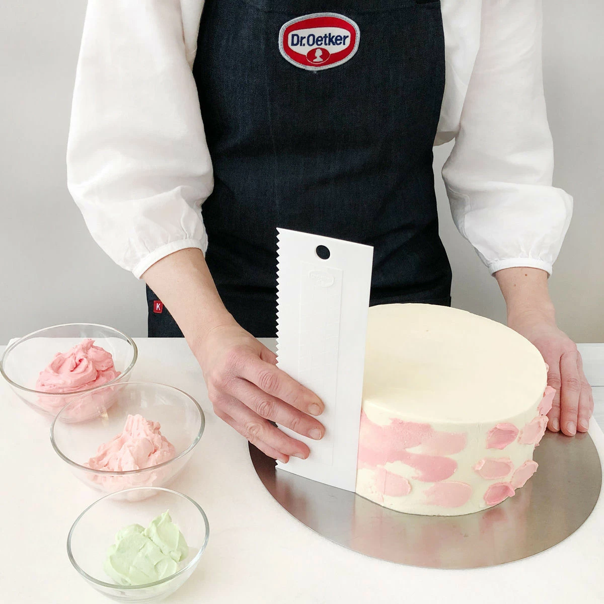 Für den Feinschliff des perfekten Layer Cakes kommt der extra hohe Tortenglätter zum Einsatz: Tortenoberfläche und Rand lassen sich mit nur wenigen Handgriffen schön gleichmäßig und dekorativ einstreichen. Der stabile Helfer verfügt über eine glatte und eine gezackte Seite – die Creme- oder Sahnetorte kann also sowohl makellos glatt gestrichen als auch mit feinen Rillen versehen werden. Dank des aufgerauten Materials liegt er gut in der Hand und ist spülmaschinengeeignet.