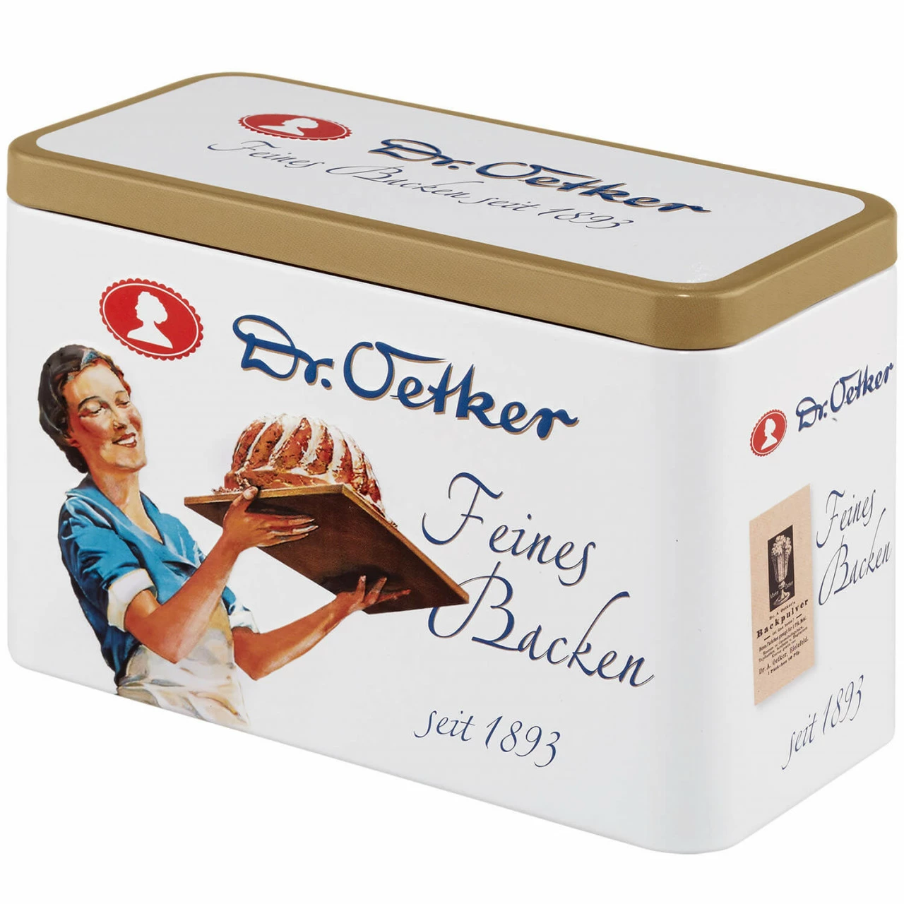 Jetzt präsentieren wir stolz, passend zum Backin Jubiläum, die liebevoll gestaltete Vintage-Dose. Damit lässt sich in Erinnerungen schwelgen, Ordnung und den zauberhaften Retro-Look in deine Küche bringen.